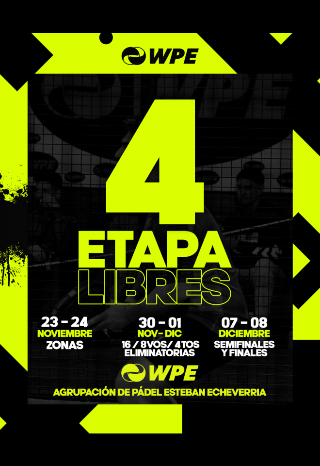 »» Evento: WPE ETAPA LIBRES »» Localidad: Ezeiza | Luis Guillon | Monte Grande »» Fechas: 22/11/2024 al 08/12/2024
